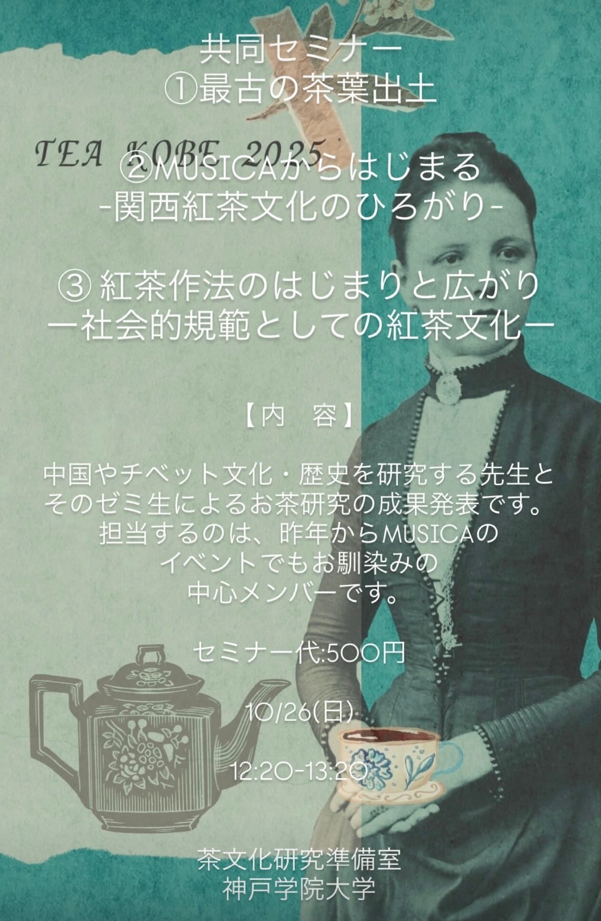 神戸学院大学人文学部 茶文化研究準備室より、3つの研究発表形式のセミナーとなります。